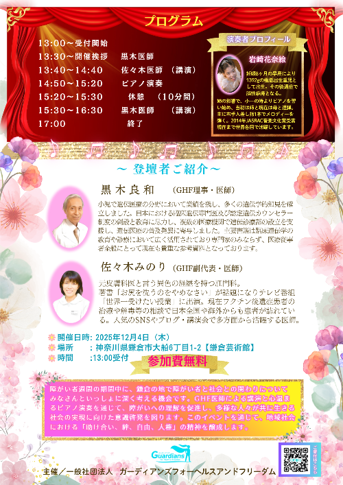 GHF医師による講演と、心温まるピアノの演奏を通して、